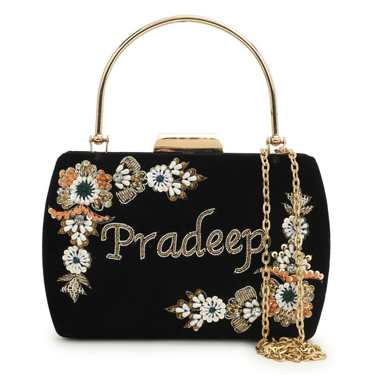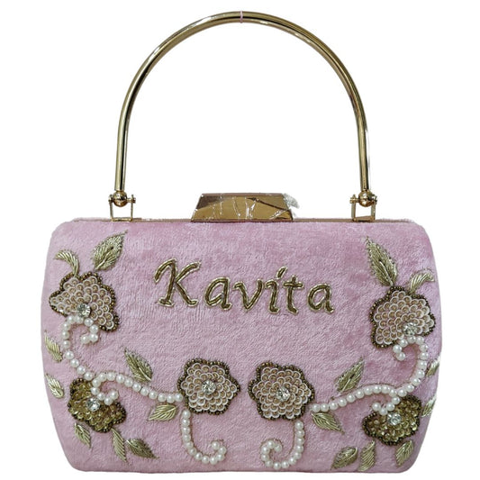 Customised Floral Embroidered Monogram Clutch Bag – Personalised Initial | Rakhi Gift for Sister