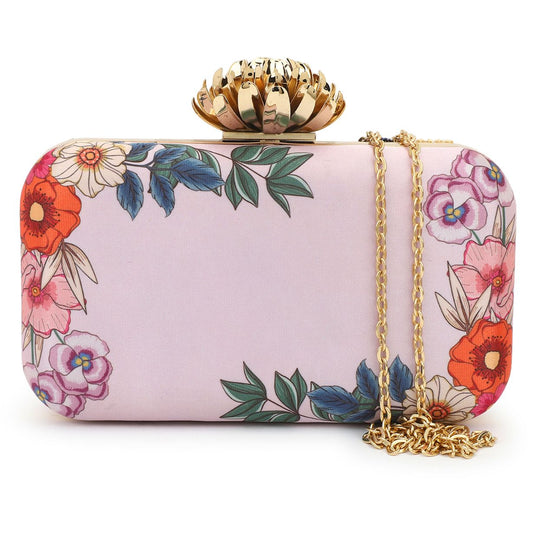 Customized Peach- Pink Embroidery Name Highlight Party Clutch