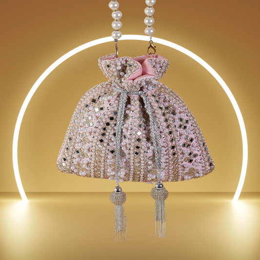 Designer Pink Silk Embroidery Wedding Potli Bag