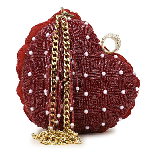 Designer Hand-Embroidered Maroon Pearl Bead Bucket Bag