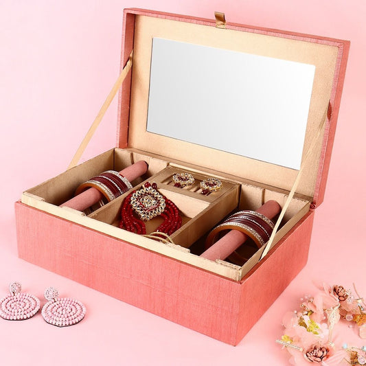 Handcrafted Pink Beaded Jewelry Box Organizer | Bridal Gift