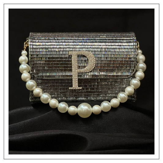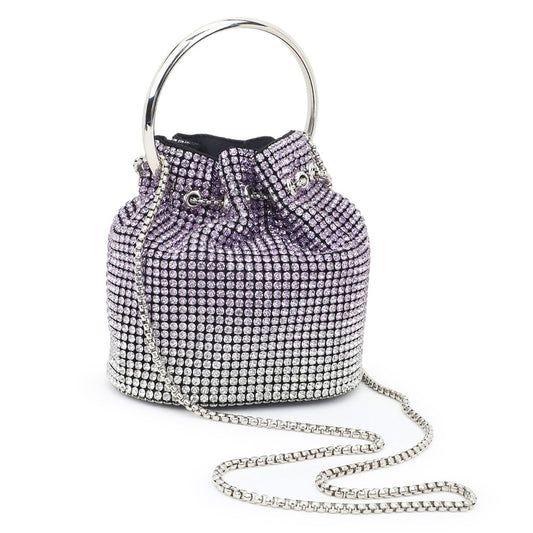 Purple Silver Rhinestone Ring Handle Party Bag for Women