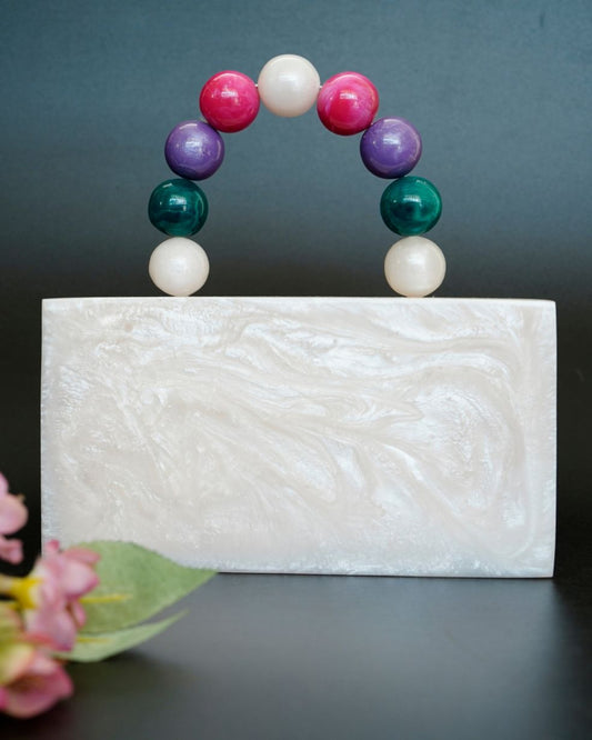 Resin Embellished Crystal Acrylic Party Clutch for Women