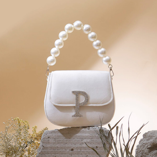 Soft Embroidery Silver Bead Pouch Bag with Handle
