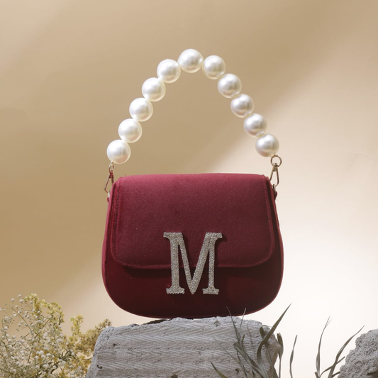 Soft Embroidery Red Bead Pouch Bag with Handle