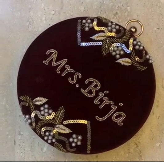 Velvet Hand Embroidered Customised Name Clutch Bag for Women