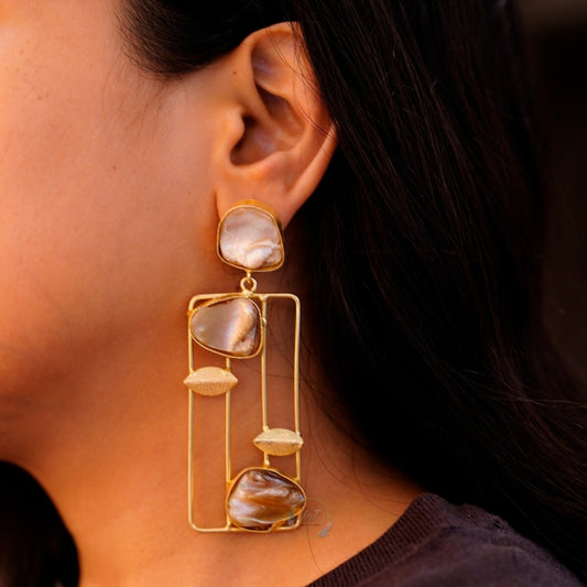 Bold Geometric Statement Earrings for Women – Modern Imitation Jewelry with Pearl Finish and Gold Frame