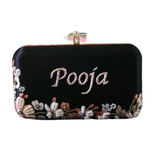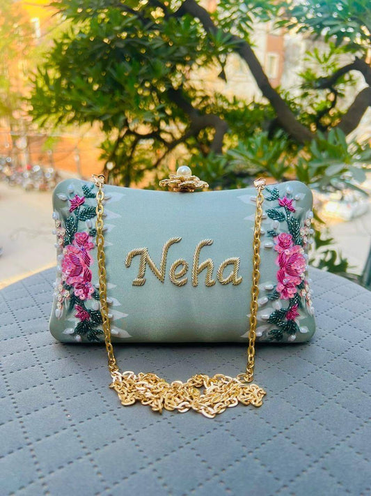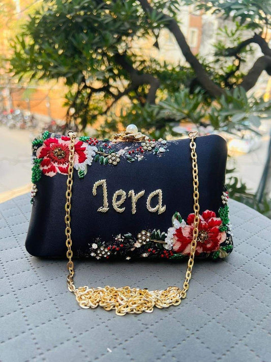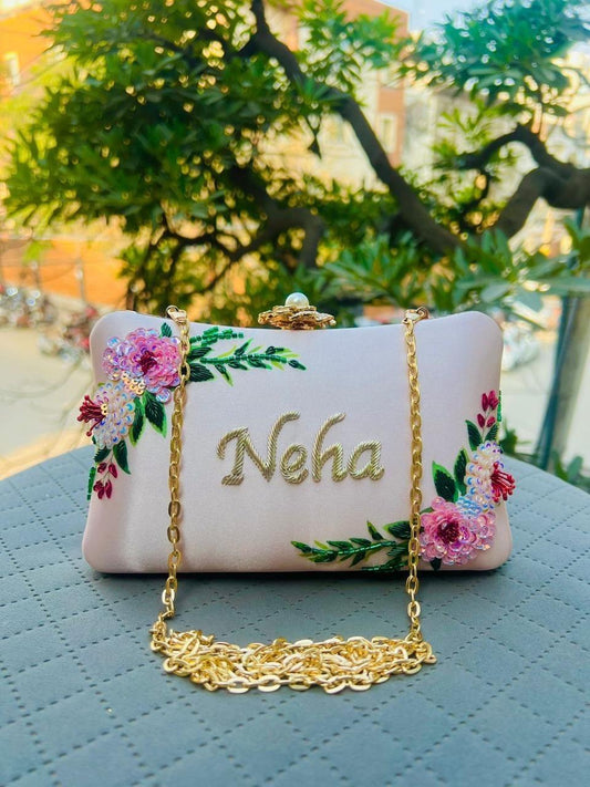 Embroidered Custom Name Clutch Purse – Handmade Floral Design Bag for Girls & Women