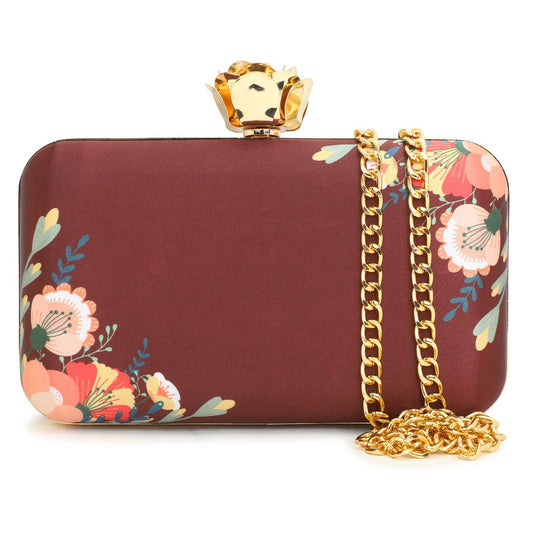 Customised Brown Name Embroidery Highlight Party Clutch