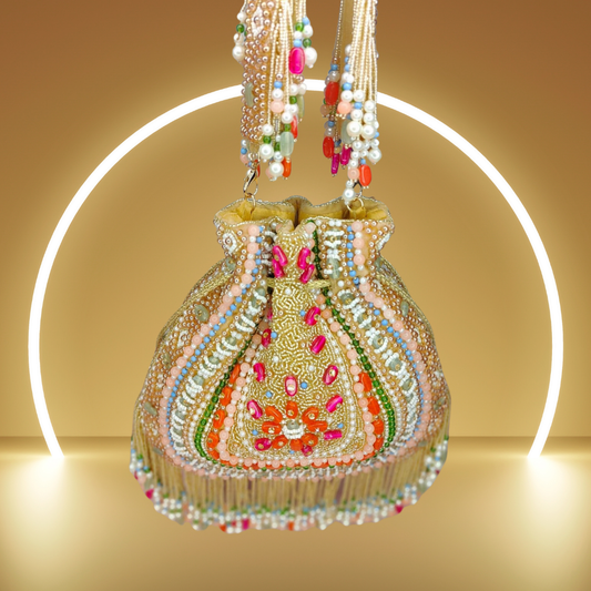 Designer Multicolored Potli Bag For Unique Partywear Styles - Dohri