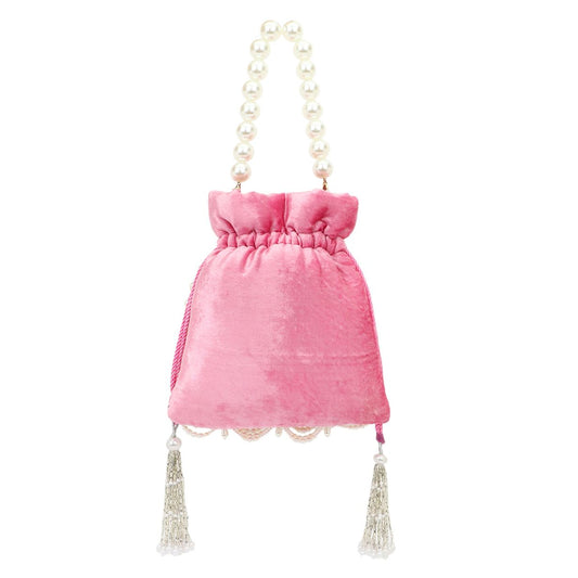 Pearl Pink Embroidered Velvet Potli Bag for Party & Traditional Wear
