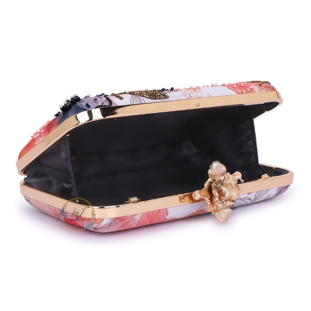 The gorgeous floral embroidered multicolor clutch bag will elegantly elevate your entire appearance. Pair this vibrant clutch with any outfit for a pop of color & step out in style.